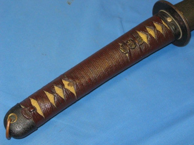 The wrapping of the handle is particularly interesting. The cloth material is dark brown in color. It has been