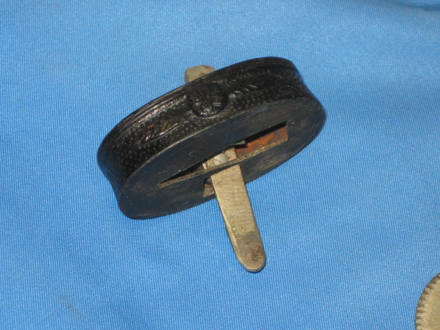 The following pictures show the locking mechanism for the sword. It is interesting that there are two metal buttons.