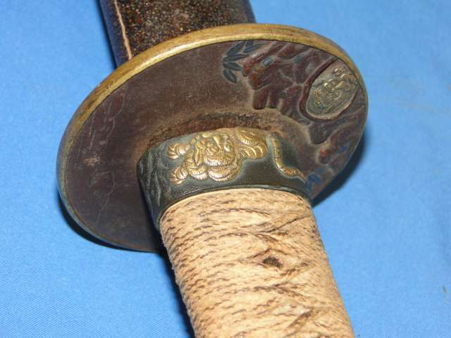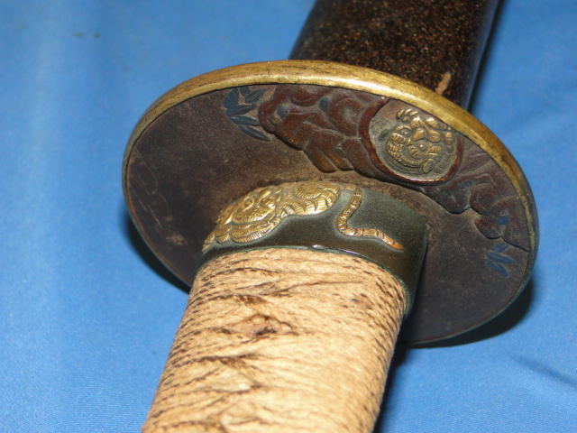 The tiger motiff is seen in multiple sections of the sword. The craftsmanship is very high. The tiger on the Kashira