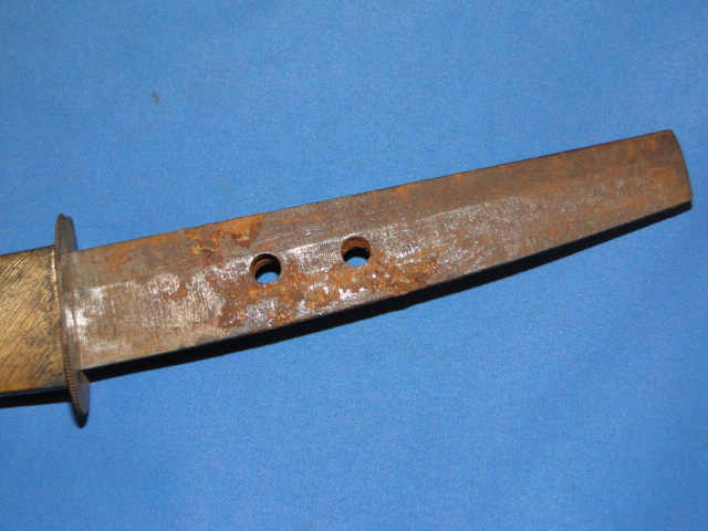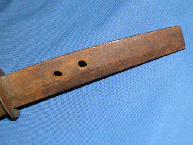 The tang is not signed. The end is cut straight. There are two holes drilled in the tang. This is an indication that