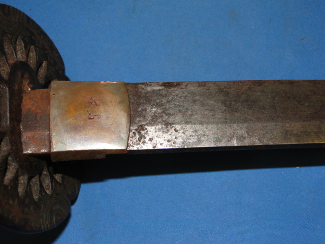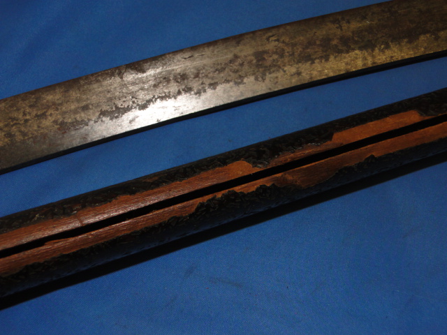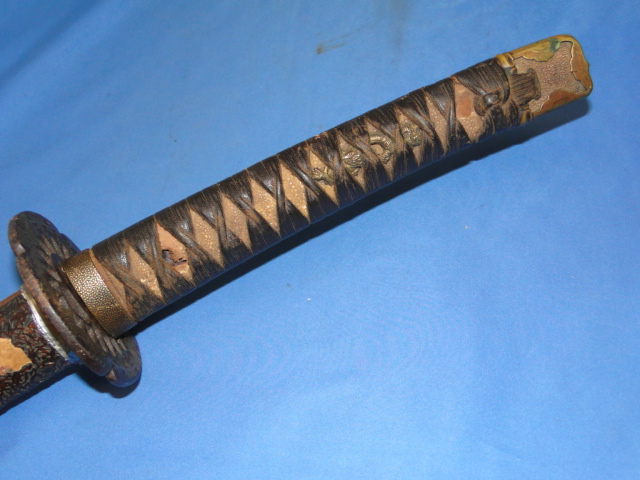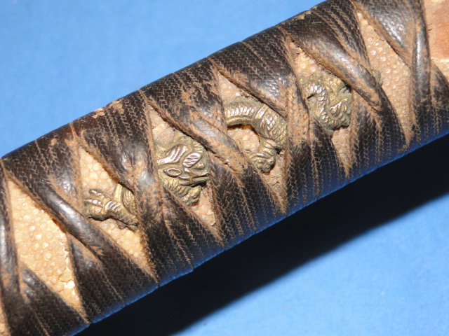One menuki is present and it is in the shape of a dragon. Much of the ray skin remains present. The scabbard is