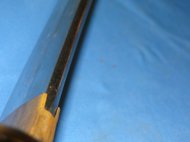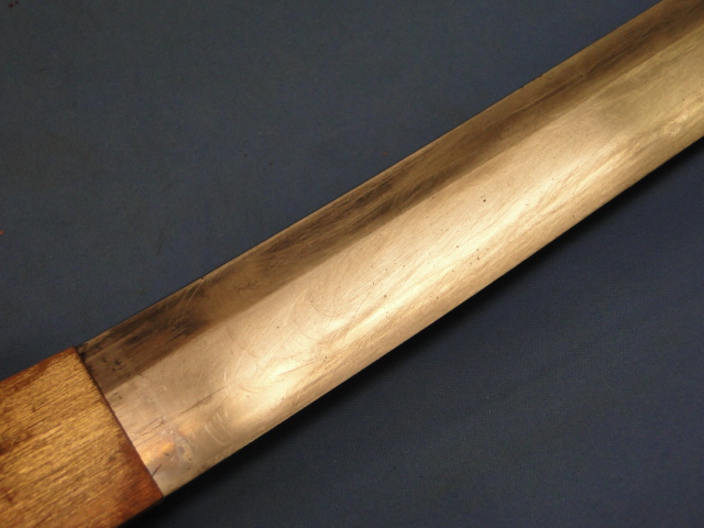The spine of the blade is in the shape of an inverted "V". The Habaki is made of brass and is well fitted to the balde. Its