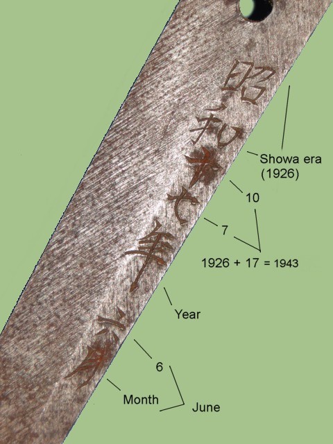 The tang of the sword is marked on both sides. The following photo shows the side with the date. The sword was manufactured on