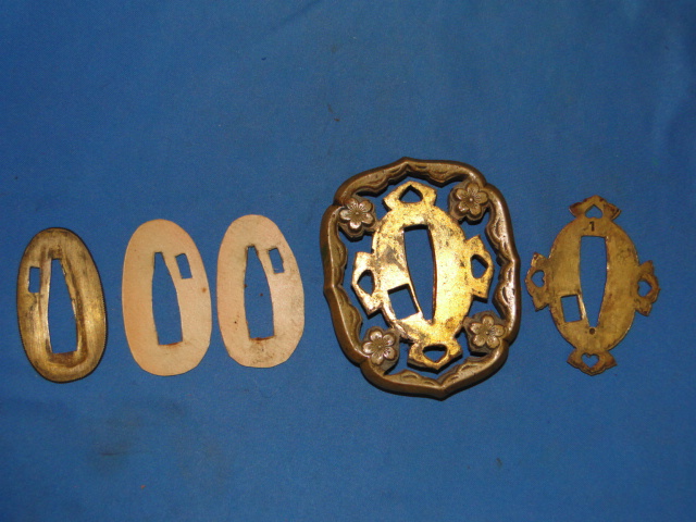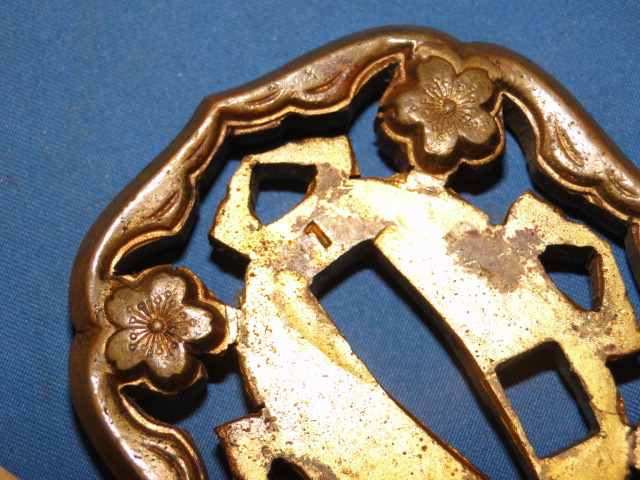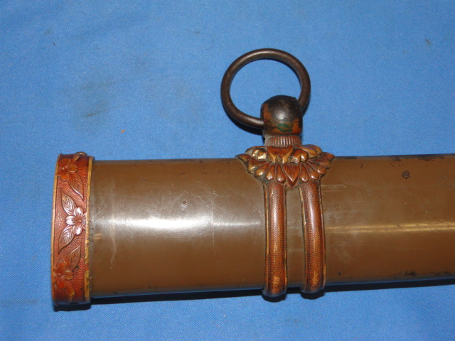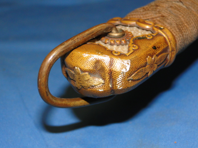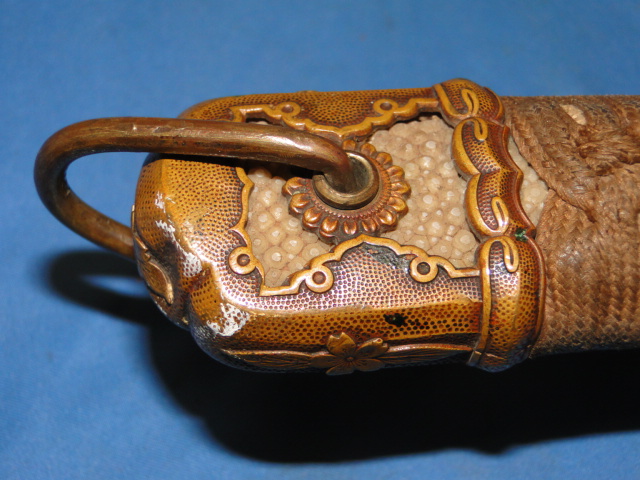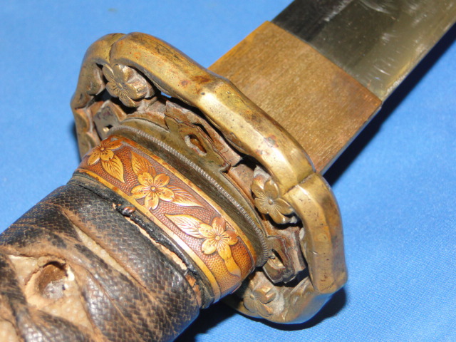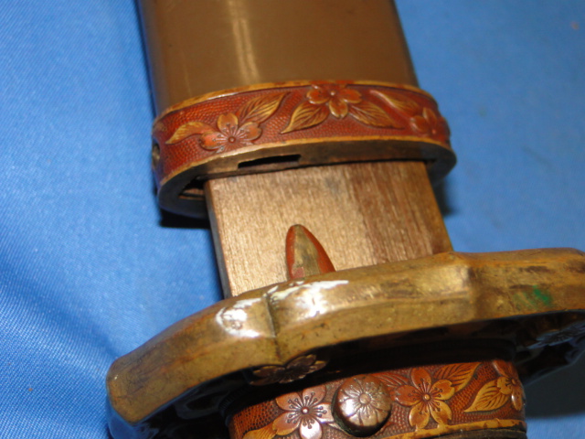 The throat piece, known as "Fuchi" is also adorned with the same type of flower and a leaves to each side.