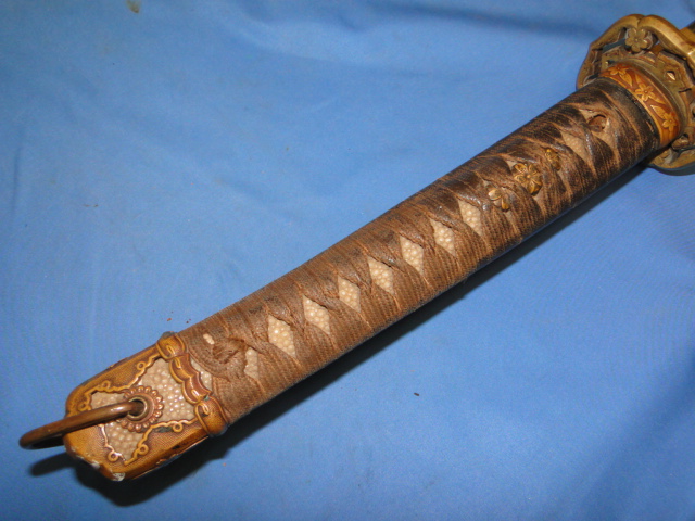 Japanese Army. The handle displays the traditional wrapping with the three flower Menuki. The Tsuba is of early war