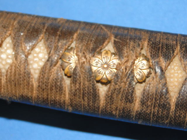 These photographs also illustrate the well define bumps of the white ray skin which covers the handle.