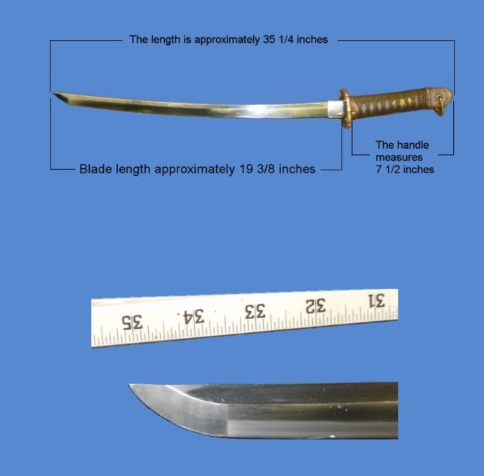 This a Samurai sword with a blade from the Edo period. It was used during WWII, issued to a pilot or a member of a tank crew. The fittings are all WWII period.
