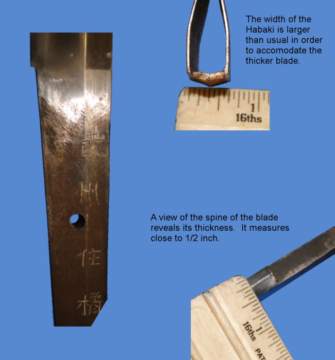 The photo above provides a good look at the measurements for the Habaki and the spine of the blade.