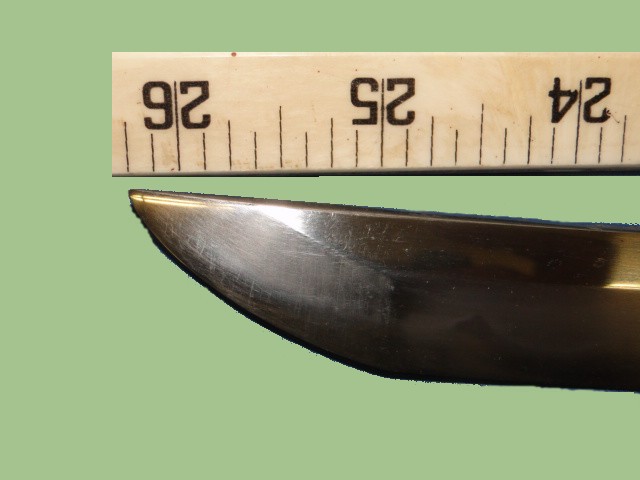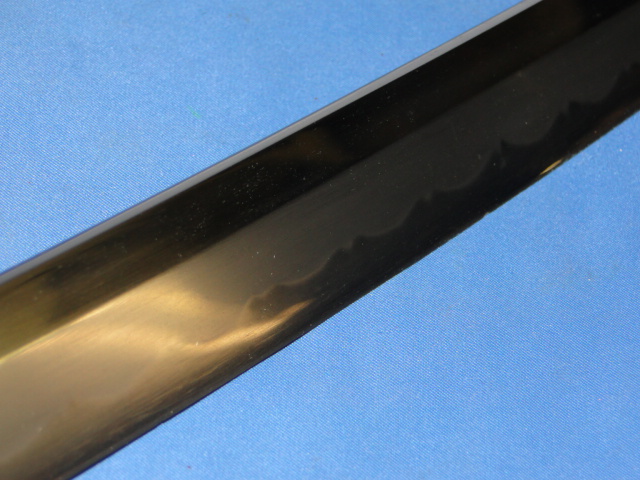 the WWII period. The Tsuba is of late war production. A more pronounced half moon shape opening has been