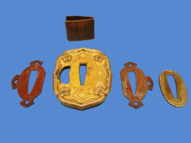 The different components of the sword are shown here. The Habaki is made of brass and is typical design for