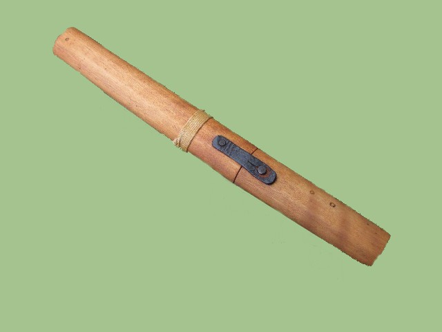 purposes. This example is housed in a wooden storage case. A leather section is used to secure both
