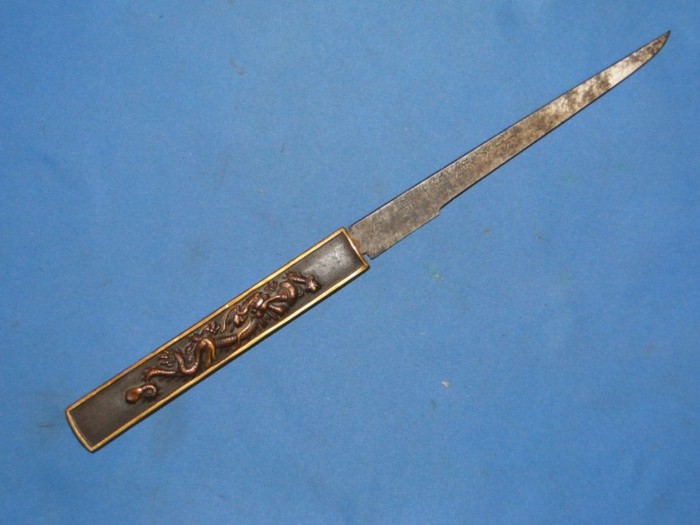 The following photograph illustrates both sides of the handle. A dragon Menuki is found on both sides.