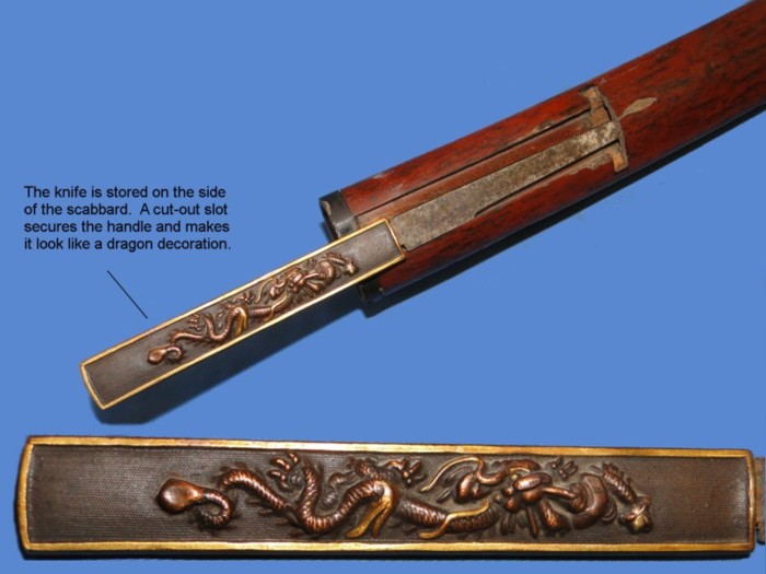 Some of the swords were outfitted with a small utility knife. The scabbard had an opening to hold the knife.