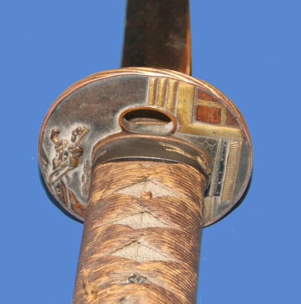 The Tsuba (cross guard) is a true piece of art. It displays a well executed motiff on both sides. The top displays