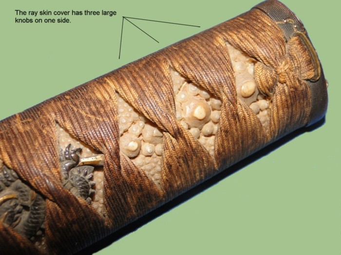The skin of a ray has different size bumps. When selecting the ray skin to cover the handle special attention