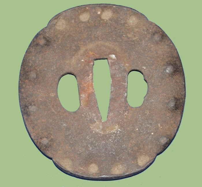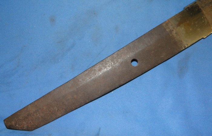 The tang is signed in one side with two characters. A single hole has been drilled. The end of the tang has been