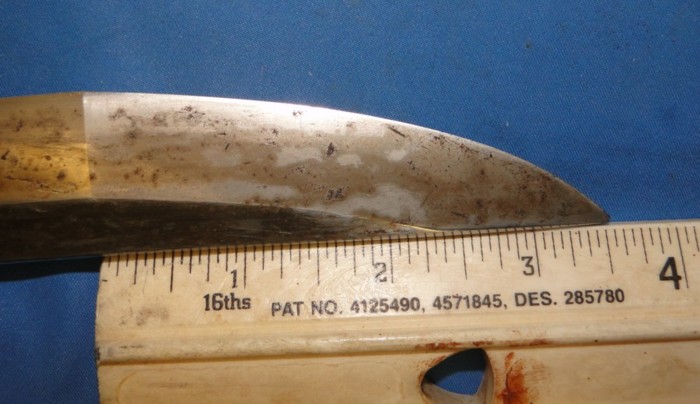 The tip has a length of nearly 3 1/2 inches. This style is known as Okissaki. This example is very nicely done.