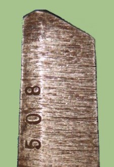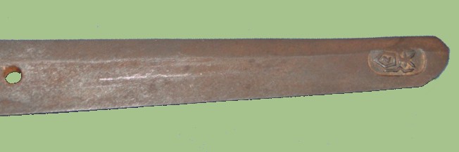 Additional markings to the blade included factory stamps. The tang shown below has such a stamp applied to the end section.