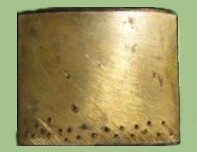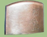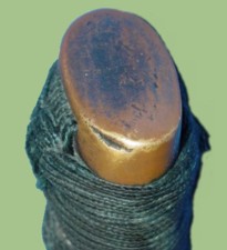 Copper Habaki with markings. Not all of the habakis were marked. |