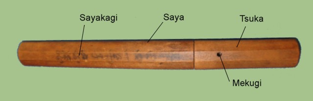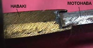 that indicate the begining of the tang. The Habaki has a tapered shape which allows the blade to be held snuggly