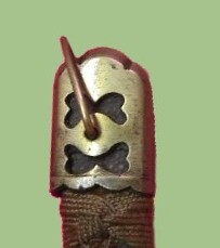 The standard pommel for the Japanese Imperial Army during WWII was of a bronze color and had the design of a large