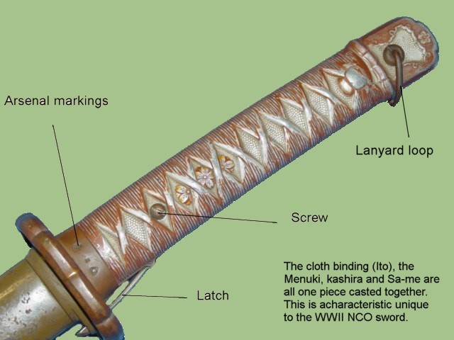 the WWII swords. The scabbard is usually made of wood and lacquered in different colors.