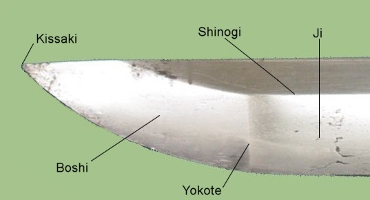 Samurai sword blade tip terminology. Refer to the above graphic for placement of terms.