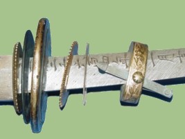 Each of the spacers in some of the swords is marked with matching characters. This was done to demonstrate that