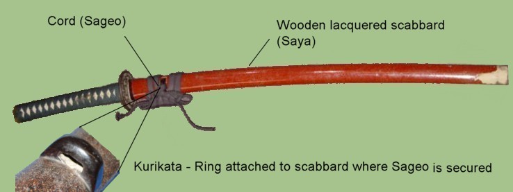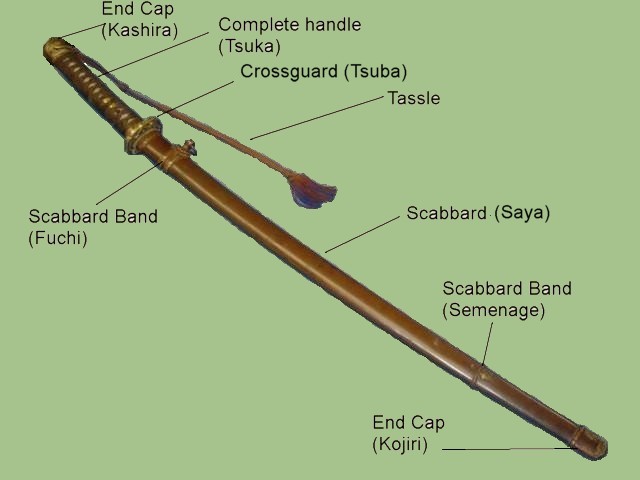 the scabbard. The Tsubas (handguard), Kashira (pommel) and Menuki (handle ornament) may vary greatly from