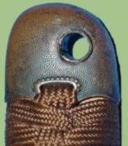 This is a 1944 Shingunto pommel. Rounded design with little ornamentation other than light pebbling.