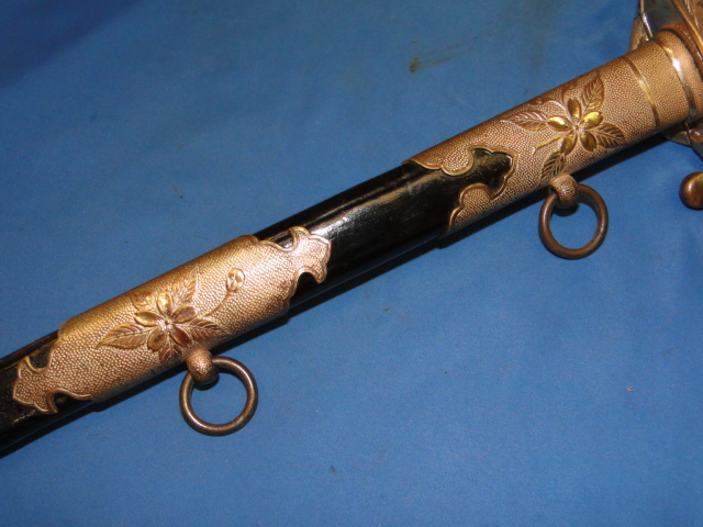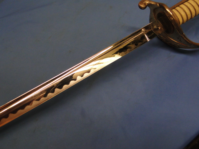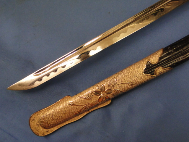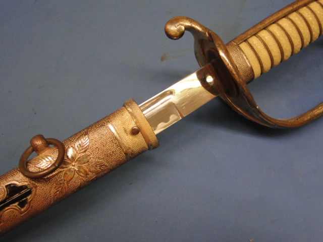 This is a very nice example of a Japanese army officer parade sword. Machine made blade. A nice Hamon pattern is etched in place.