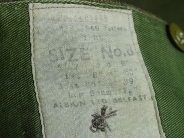 The inside of the pants has a tag. The parts that are legible read: Pattern 1949, Size No 8. Albion Ltd Belfast.
